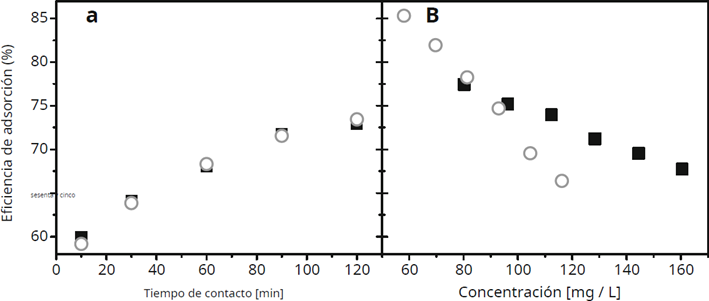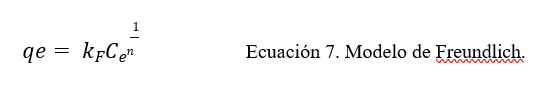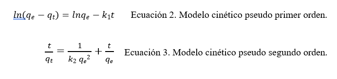 In the kinetic studies, modeling was performed to determine which step controlled the removal rate, this could be external mass transfer, internal diffusion or adsorption; in most of the literature, the kinetics was controlled in the adsorption step so it was possible to identify that the pseudo-second order model provided a better fit, leading to the conclusion that most of the experiments that were carried out were governed by Quimi sorption phenomena.