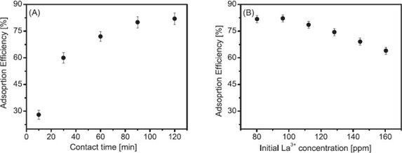 The removal of La and Eu based on the compilation of information by Gallardo et al.(33) it was found that at a pH of 4, the adsorption was 87 % for Eu and 85 % for La. They report that this occurred due to the high carbon content of the walnut shell, which served as the adsorbent.