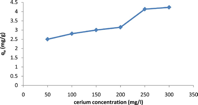 Sadovsky et al.(40) reported that the amount of Ce adsorption at pH 5 was 90 %. For the recovery of the adsorbent, three adsorption-desorption cycles were performed, resulting in a recovery rate of 97 % for the spirulina biomass. This relates to its good utility as a bioadsorbent and feasibility for the recovery of Ce ions.