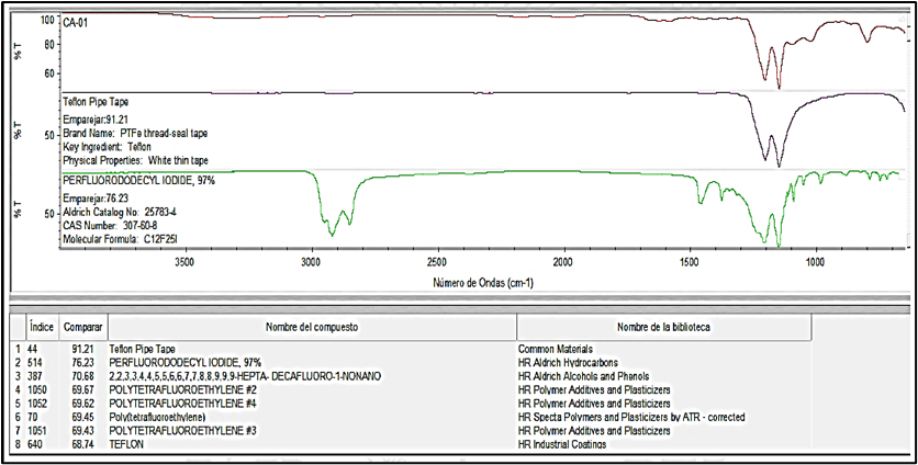 Analyzing the Impact of Particulate Matter 2,5 on Air Quality in the District of Morales, Province of San Martín, 2022, indicates that meteorological parameters such as temperature, relative humidity, wind speed, and wind direction were evaluated in order to verify the presence of PM2.5 at each monitoring point. A study investigated PM2.5 in Sambalpur, finding values ranging from 36,38 to 64,00 µg/m3, indicating that it is above the annual limit set by the CPCB. Meanwhile, a study, in their research, monitored meteorological parameters where temperature ranged from 26,3 °C to 27 °C; relative humidity from 58,3 % to 71,2 %; wind speed from 0,5 m/s to 4,5 m/s with an average wind direction from 22,5 degrees to 247,5 degrees, in which the wind rose played a role in the dispersion and dilution of pollutants, in addition to being favored by the topography and anthropogenic activities in the area, where the highest average air temperature was recorded during the months of April (26,4 °C) and May (26,2 °C), and the lowest was (21,5 °C). A significant positive correlation between temperature and wind speed in our analysis reinforces this fact (r=+0,338, p<0,05).(59,60,61,62,63) The air quality in the area ranged from light to moderate air pollution, which is mainly attributed to particulate matter (PM2.5). Meanwhile, when analyzing the presence of microplastics, for sample CA-01, the presence of perfluorooctyl iodide with wavelengths of 3343,58 cm-1 and 2966,80 cm-1 was detected. For sample CA-02, no elements of a certain plastic material were identified. In sample CA-03, no elements of a certain plastic material were observed. For sample CA-04, the presence of perfluorodecyl iodide with wavelengths of 1204,42 cm-1 and 1095,91 cm-1 was detected. For sample CA-05, the presence of perfluorodecyl iodide with wavelengths of 2969,75 cm-1 and 1212,43 cm-1, in sample CA-06, the presence of perfluorodecyl iodide was detected with wavelengths of 1554,58 cm-1 and 1096,96 cm-1, in sample CA-07, the presence of perfluorodecyl iodide with wavelengths of 2963,86 cm-1 and 1455,39 cm-1 was detected in sample CA-08, where the presence of perfluorodecyl iodide with wavelengths of 2966,60 cm-1 and 1412,59 cm-1 was detected-1. Meanwhile, in sample CA-09, the presence of perfluorodecyl iodide was detected at wavelengths of 1149,09 cm-1 and 1103,52 cm-1. Finally, in sample CA-10, no plastic materials were detected. A study explored the distributions, compositions, and morphology of microplastics in indoor and outdoor air in New Jersey, United States. Microplastic fibers, films, and fragments of polystyrene (PS), polyethylene terephthalate (PET), polyvinyl chloride (PVC), polyethylene (PE), and polypropylene (PP) with similar textures but different sizes were identified in both total atmospheric deposition and particle samples (PM2.5). therefore these results reveal that the properties of airborne microplastics in urban environments are important for understanding their fate, transport, and potential health risks. Particles (PM2.5) and microplastics could act as carriers of polycyclic aromatic hydrocarbons (PAHs) that may increase the potential risk of cancer.(64,65,66)